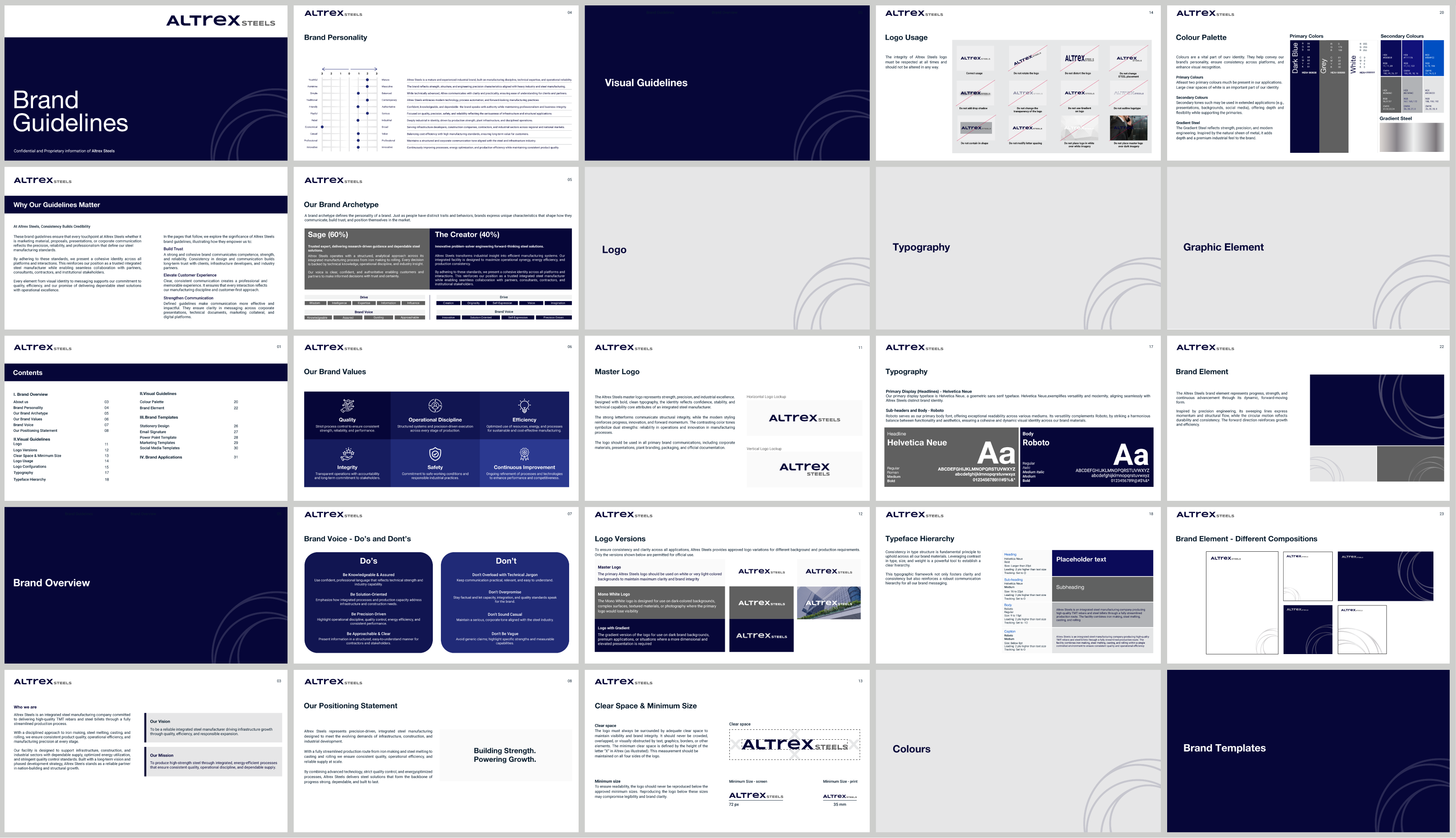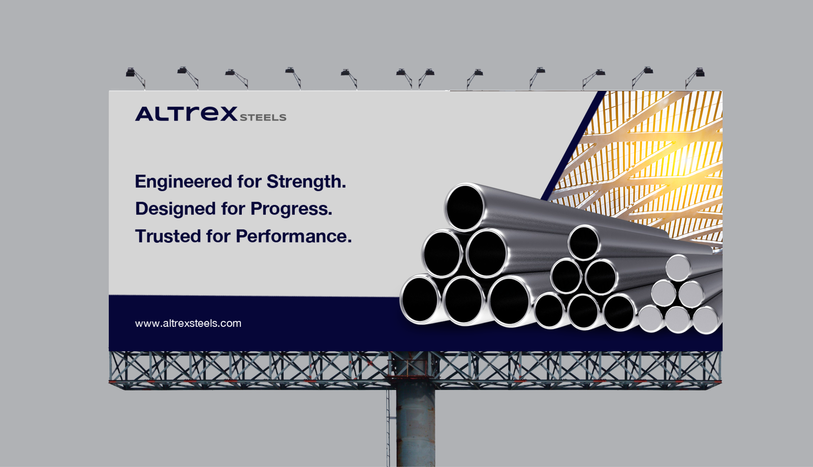 The branding exercise for Altrex Steels positions the brand as a modern and powerful industrial identity built on strength, precision, and reliability. Blending structural clarity with a refined industrial aesthetic, the identity reflects the durability and performance of high-quality steel. More than just a visual system, it communicates operational excellence and engineering discipline, creating a strong and trustworthy brand presence. This approach establishes Altrex Steels as a dependable partner in supporting infrastructure, construction, and industrial growth.