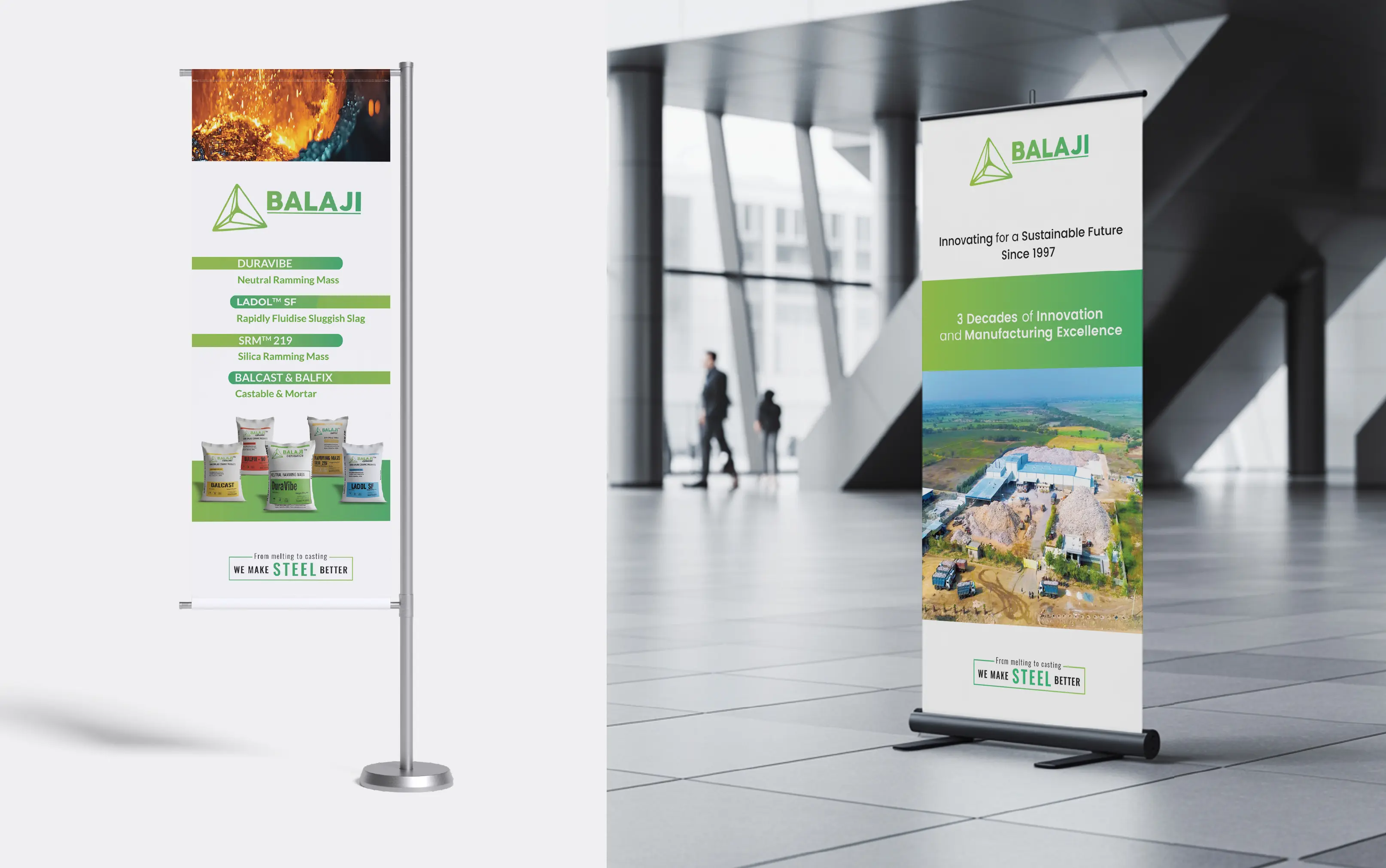 We designed a striking set of exhibition creatives for Balaji Ceramics that highlighted their craftsmanship and product range with precision and visual impact.