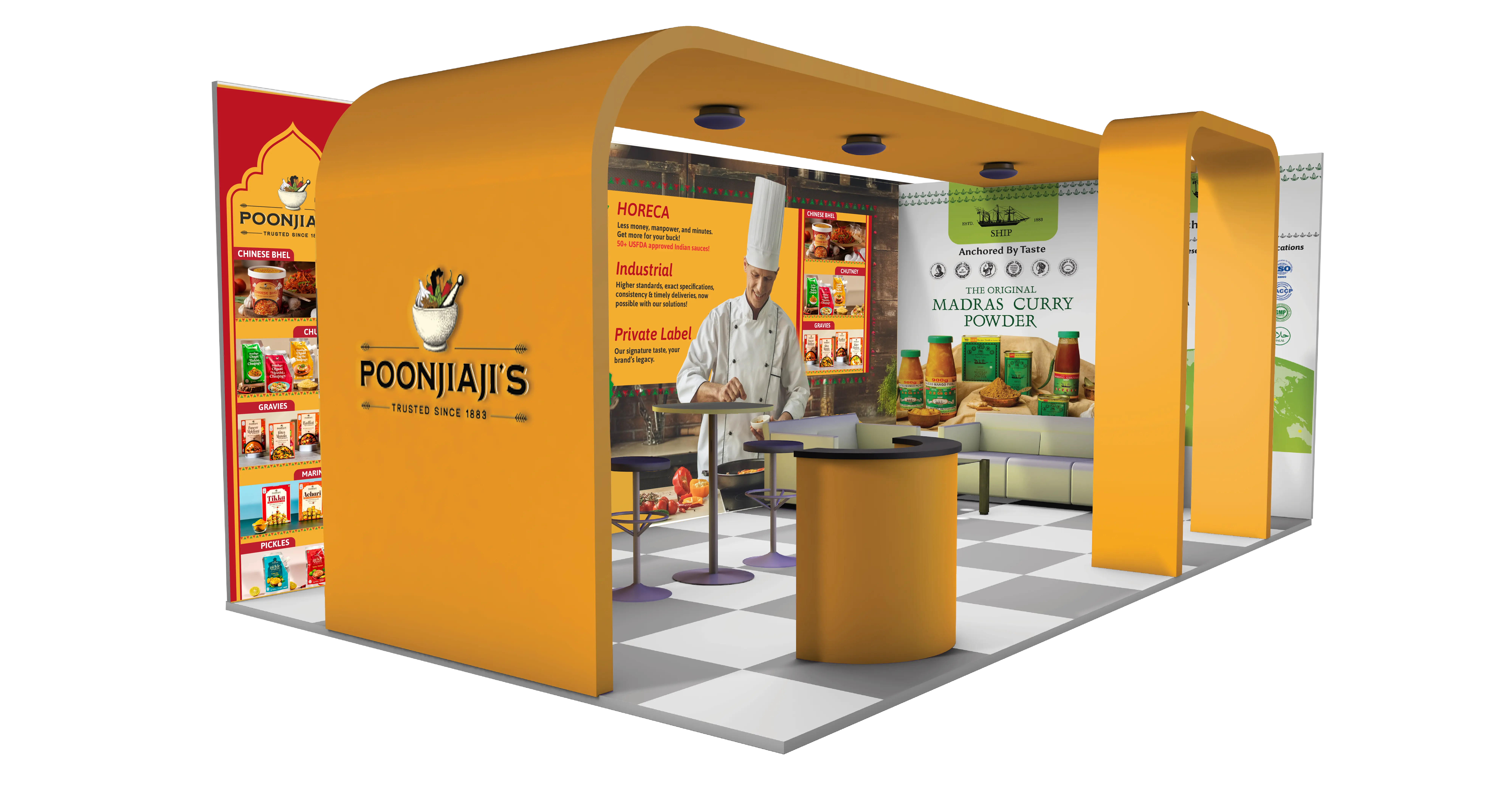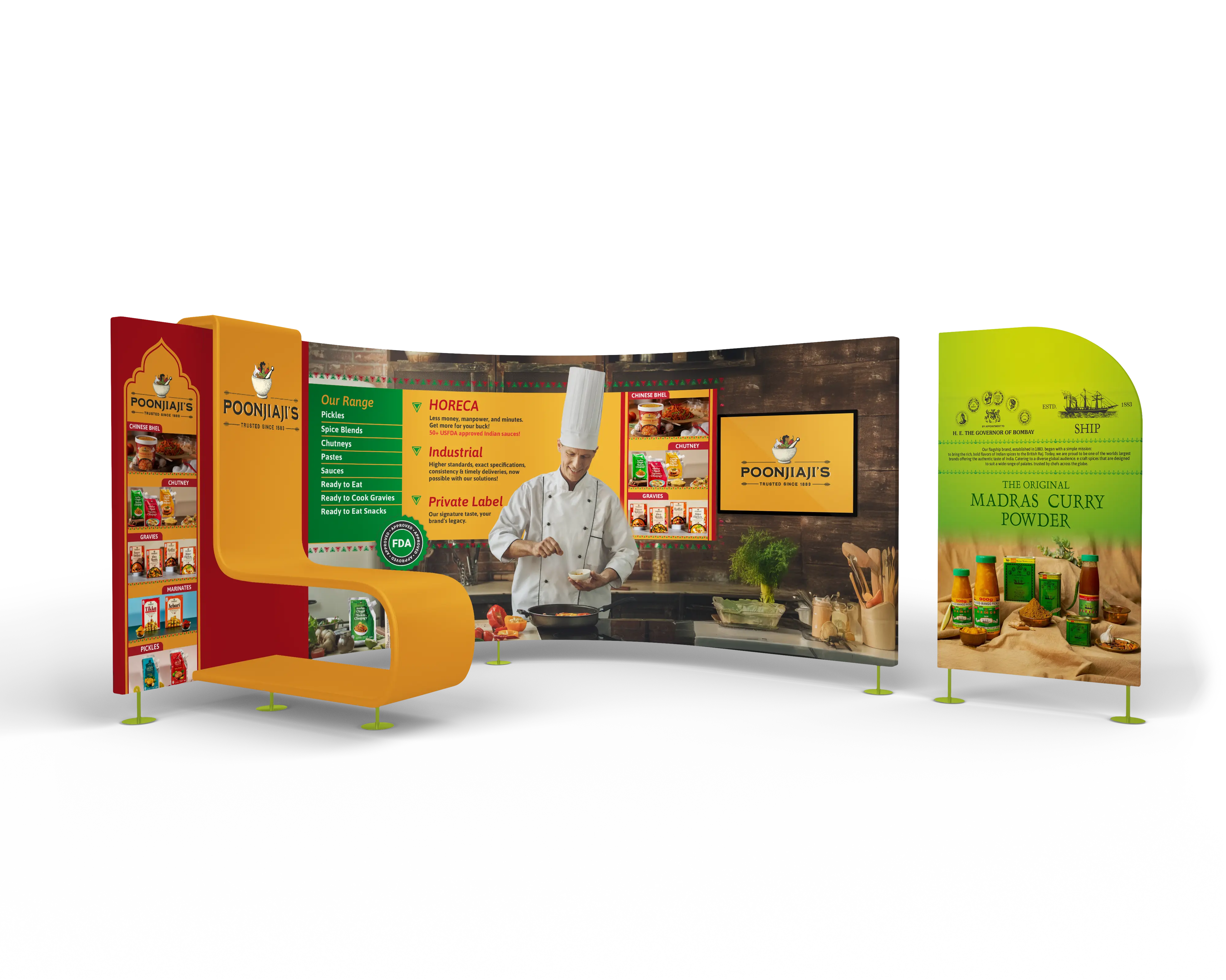 We designed the exhibition creatives for Poonjiajis, an established Indian brand known for its authentic spices and gravies.