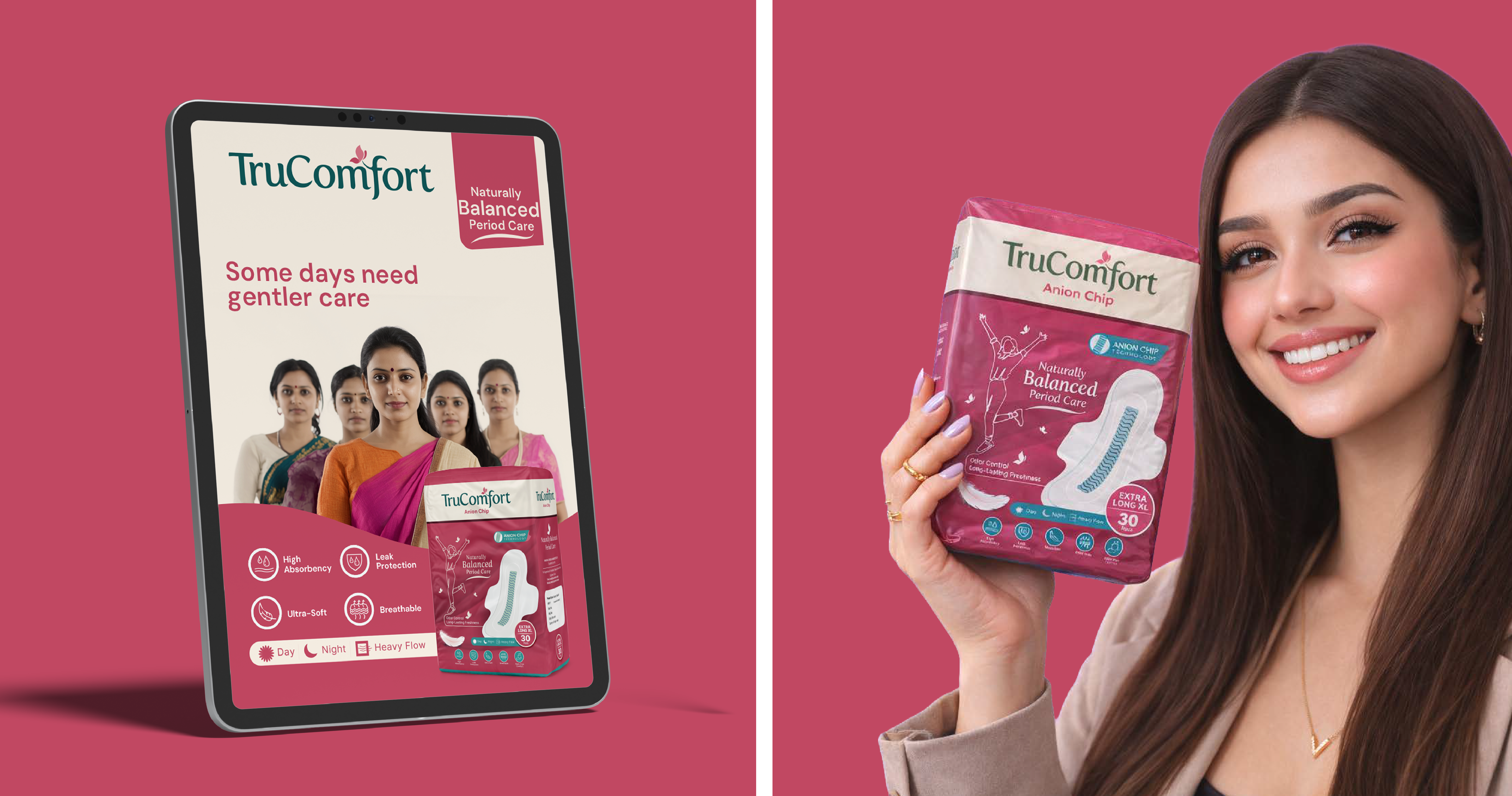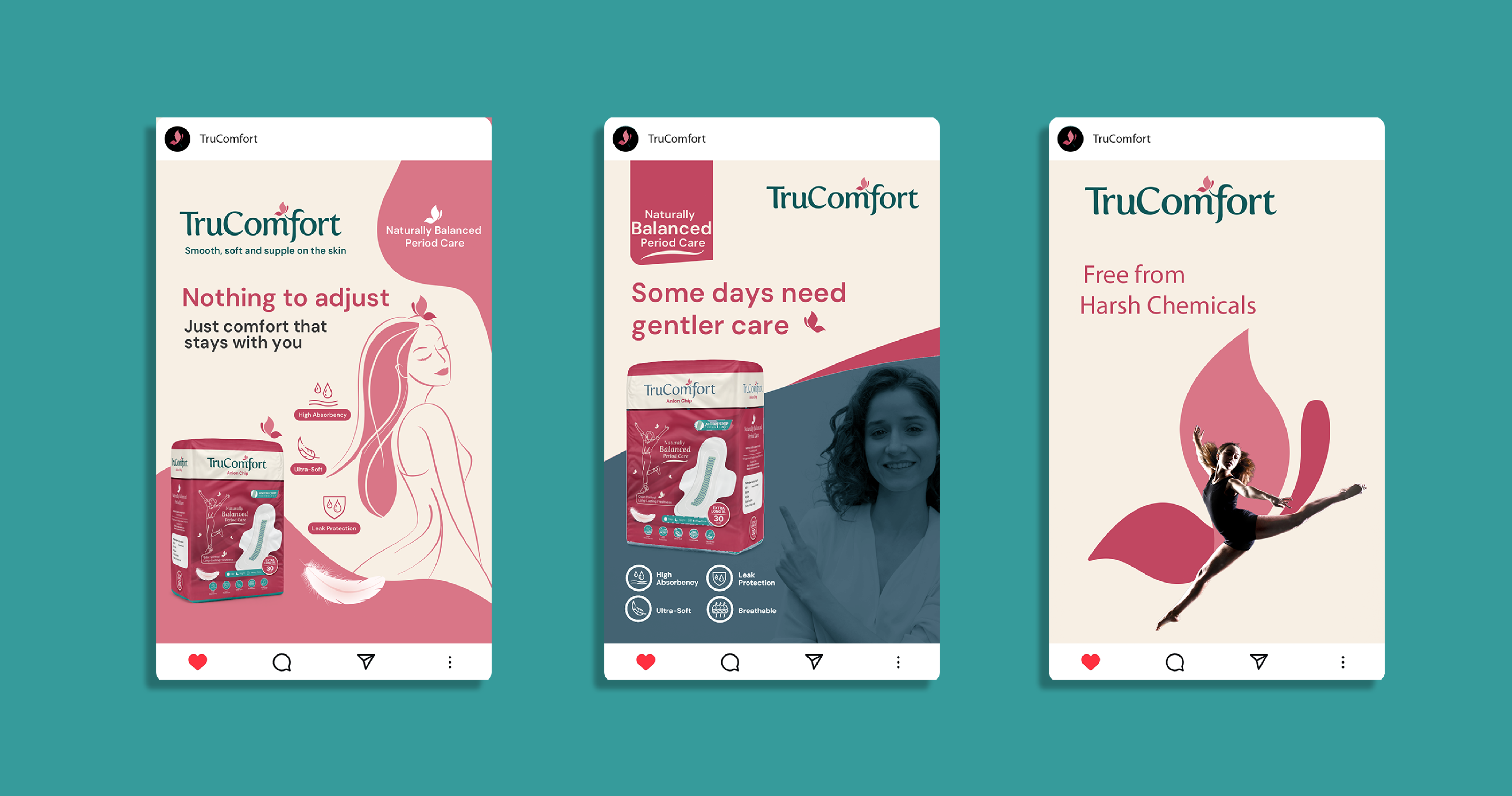 The TruComfort visual identity represents a new era of menstrual wellness,