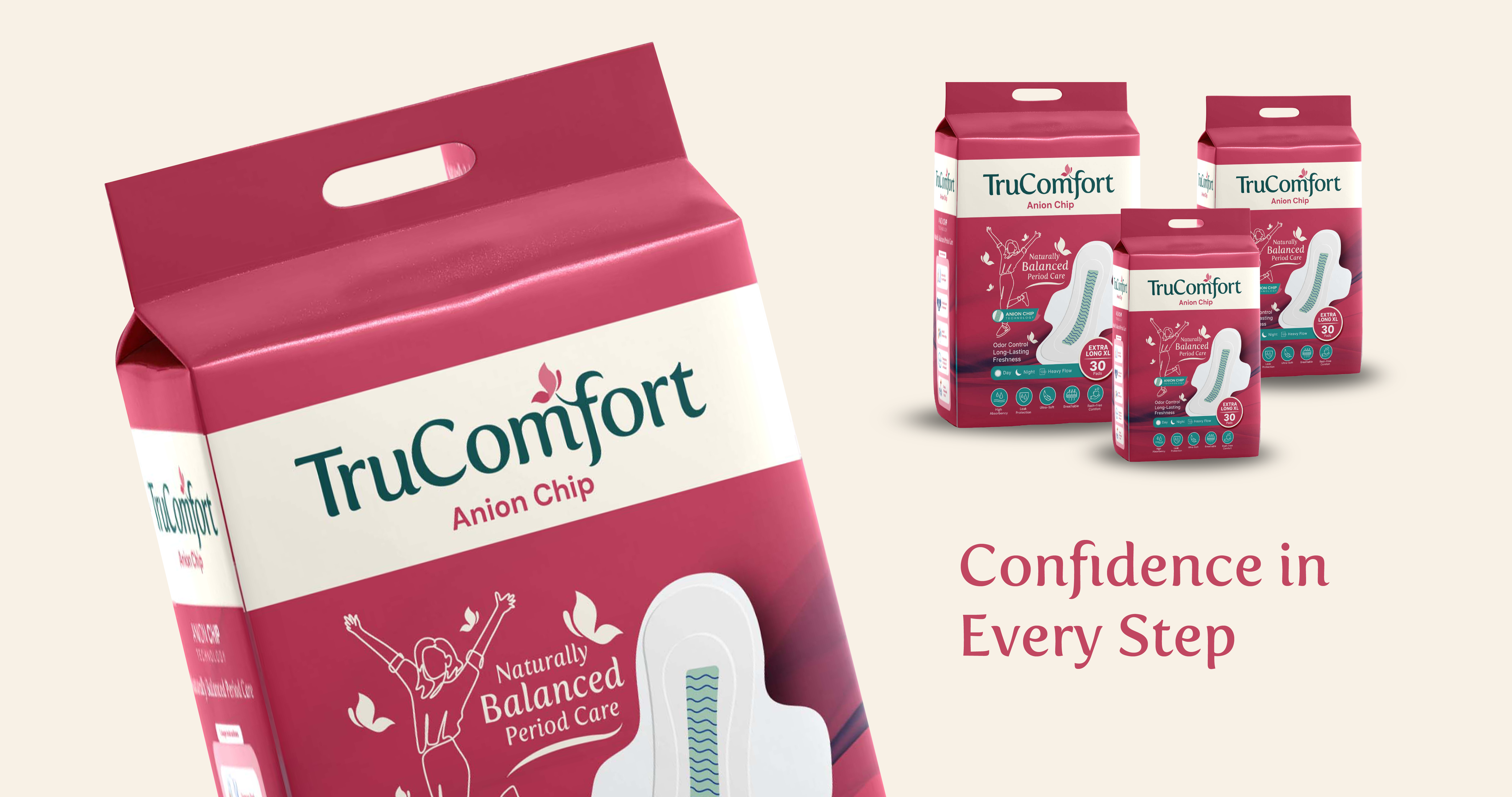 This cohesive identity strengthens TruComfort’s presence as a trusted menstrual care brand while reinforcing its commitment to improving women’s health and everyday confidence. The result is a brand that reflects care, reliability, and modern innovation, creating a future-focused identity that resonates with women across diverse lifestyles.